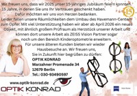 OPTIK KONRAD; bis April 2026 | Wörlitzer Straße 1 A 12689 Berlin bis April 2026 |